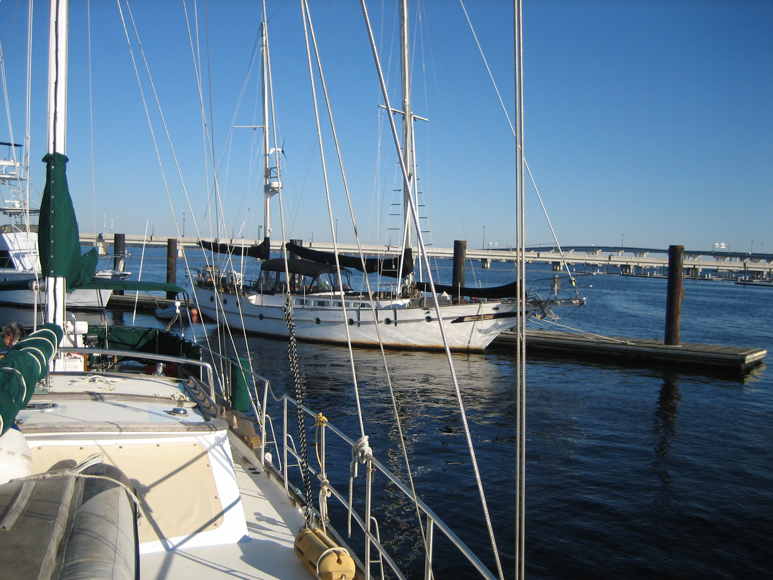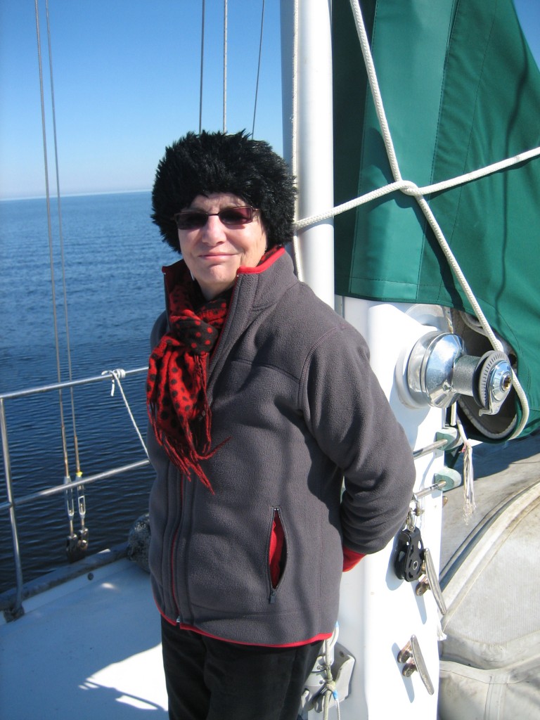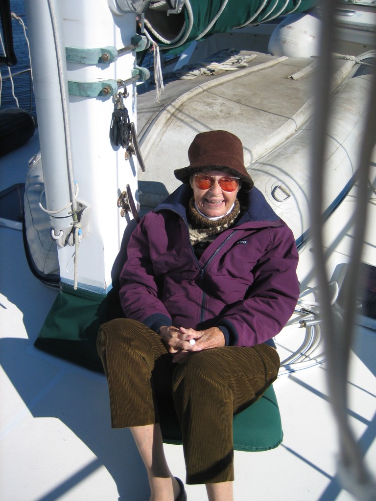 Sea Venture’s newly painted prop must have grown a beard in the three months since she launched–she dragged along on the trip, barely making 5.5 knots. Poor girl needs a shave, so our first item of business will be to find a diver to clean the bottom. I’m sorry we’re no longer in the tropics. Michael and I used to have a grand time doing the job ourselves and feeding the local fauna. (See pictures from Mexico.)