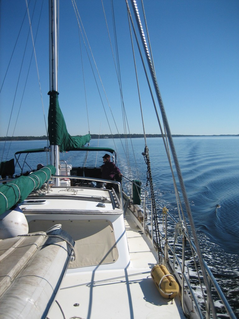 I know. Our poor darling Sea Venture sat around on the hard and then at dock for far, far too long. But Saturday dawned bright and cold, and off we went, up the ICW from Beaufort, NC, to New Bern. Now we have a vacation spot an hour away by car and a good eight hours by water.