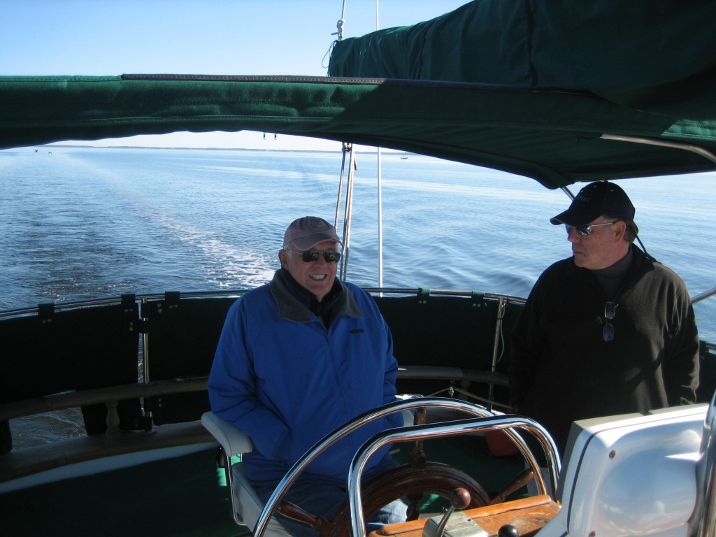 Ray and Marianne Lokay own a center-cockpit version of the Force 50, which they keep at the New Bern Grand. Force 50s are not the only thing we have in common. Ray now works for my cousin. Ray and Marianne used to live on the Eastern Shore, near where my children grew up, and the four of us, along with my sailing cousin, his wife, and my mama, have discovered how much fun we’re having with good food, good conversation, and a love of the water.